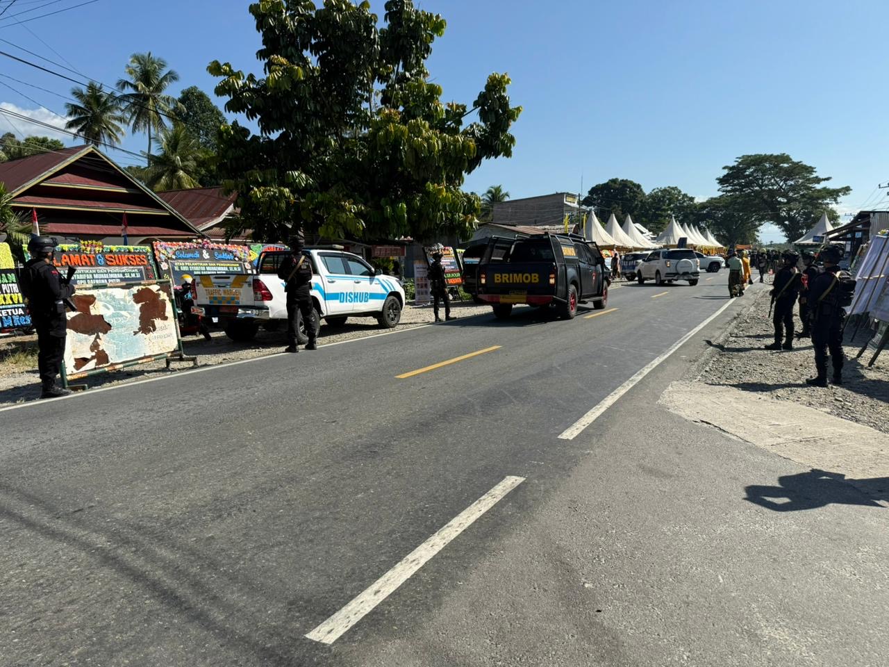 Personil Batalyon D Pelopor Satuan Brimob Polda Sulawesi Selatan melaksanakan kegiatan pengamanan pelantikan dan pengukuhan Hj. Andi Syarifah Muhaeminah, SE, M.Si Opu Daengna Putri sebagai Opu Makole Baebunta ke-XXXVI.
