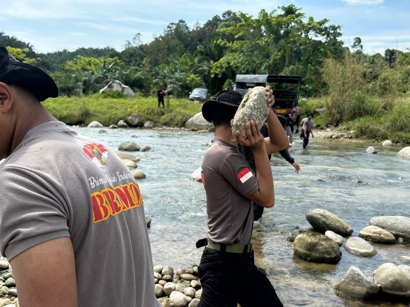 Personel Batalyon D Pelopor Satuan Brimob Polda Sulawesi Selatan melaksanakan kegiatan pengangkatan material bebatuan dari sungai dalam rangka perbaikan jembatan gantung di Dusun Salusule. Kegiatan ini merupakan hari keempat pelaksanaan dan bertujuan untuk mempercepat proses perbaikan jembatan yang menjadi akses penting bagi masyarakat setempat.