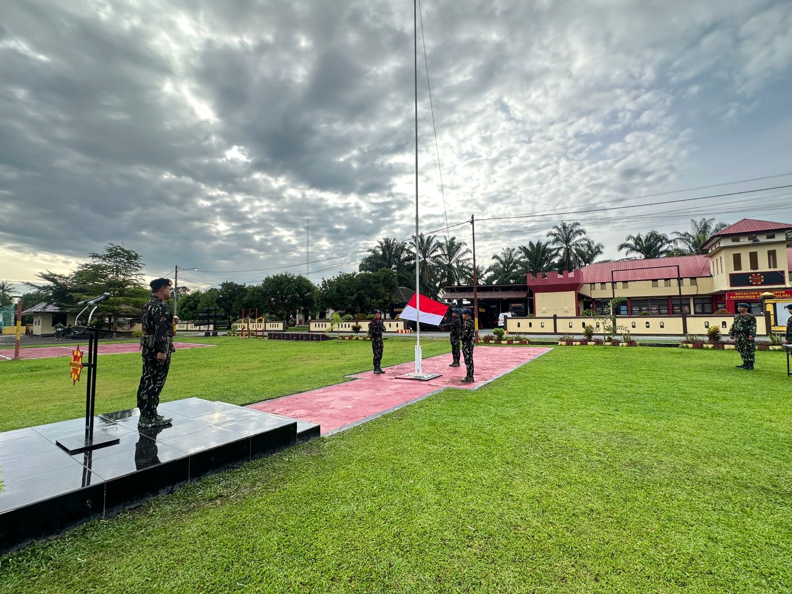 Personel Batalyon D Pelopor Laksanakan Upacara Bendera Hari Kesadaran Nasional di Mako Baebunta