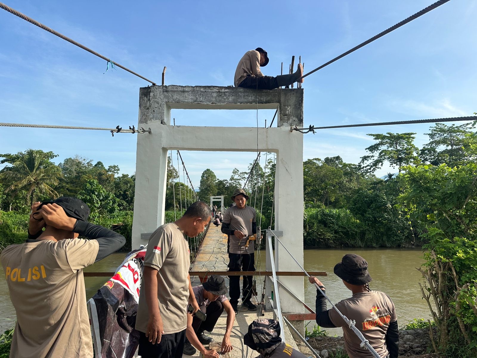 Perbaikan jembatan gantung ini diharapkan dapat segera dirampungkan sehingga dapat kembali dimanfaatkan oleh masyarakat setempat sebagai sarana penghubung utama dalam menunjang aktivitas sehari-hari. Kehadiran personel Satuan Brimob di tengah masyarakat menjadi wujud nyata pengabdian Polri dalam membantu pembangunan infrastruktur serta meningkatkan kesejahteraan warga.